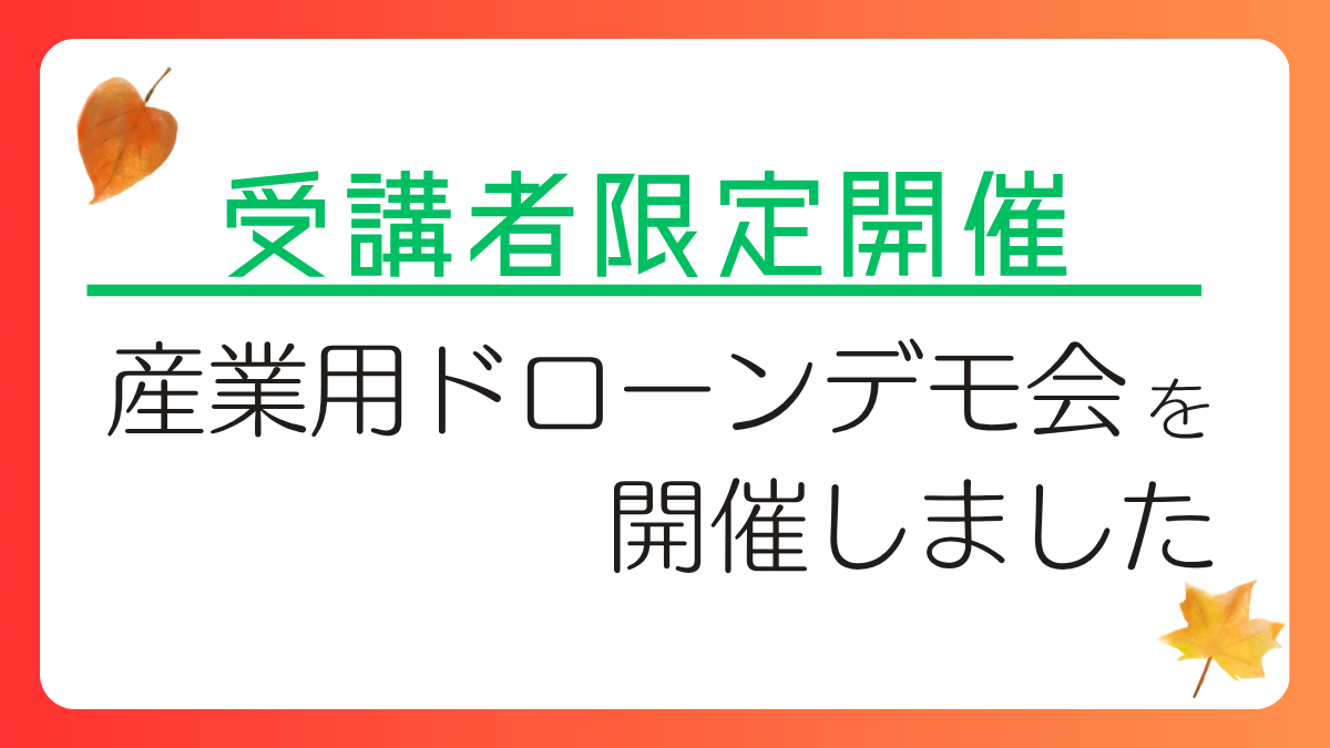 スクール受講者限定で、産業用ドローンデモンストレーションを開催しました。 当日は多くの受講者の皆さまにご参加いただき、実際の産業用機体を使ったデモ飛行を見学(続きを読む)