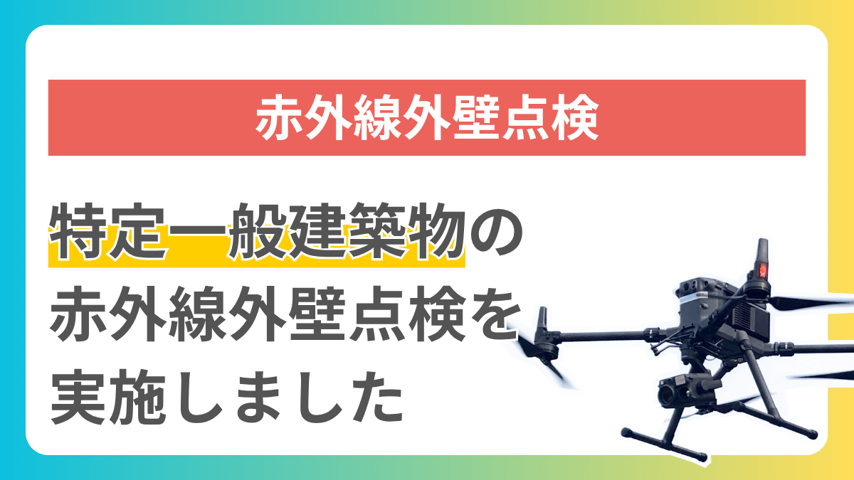 特定一般建築物を対象とした赤外線ドローン外壁点検を実施しました。 建築物の外壁は経年劣化により、タイルやモルタルの浮き・剥離などの不具合が生じることがありま(続きを読む)